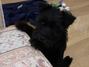 Tuppence is doing very well, and what an enjoyment she is. Every one we bump into is enthralled by her. She is our little helper, she closes the fridge door and other kitchen cabinet doors. She also fetches a ball when thrown and is walking in the park off lead, She is a dear little soul and well loved.